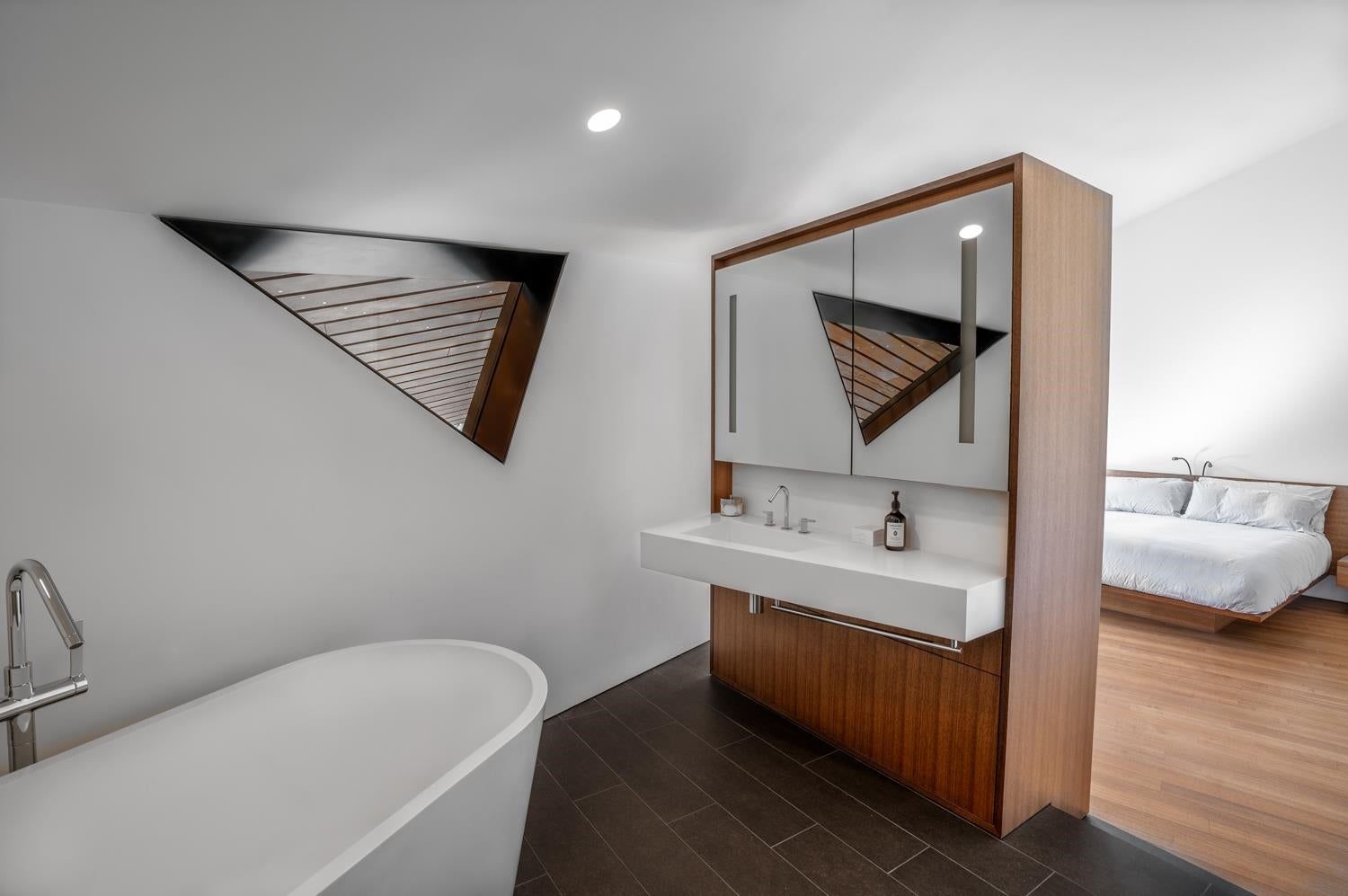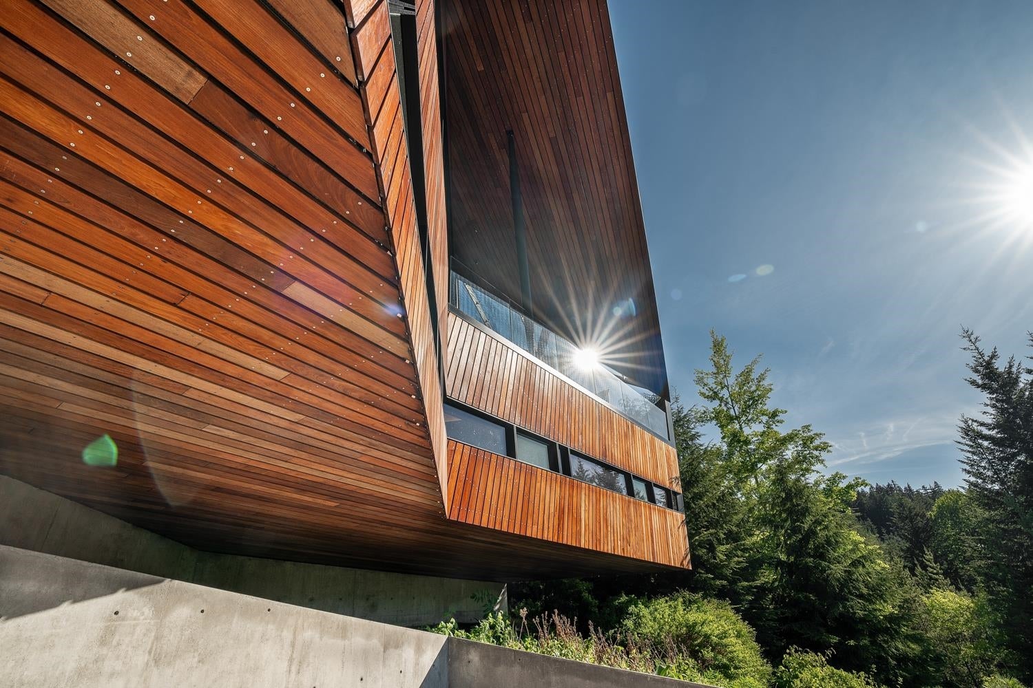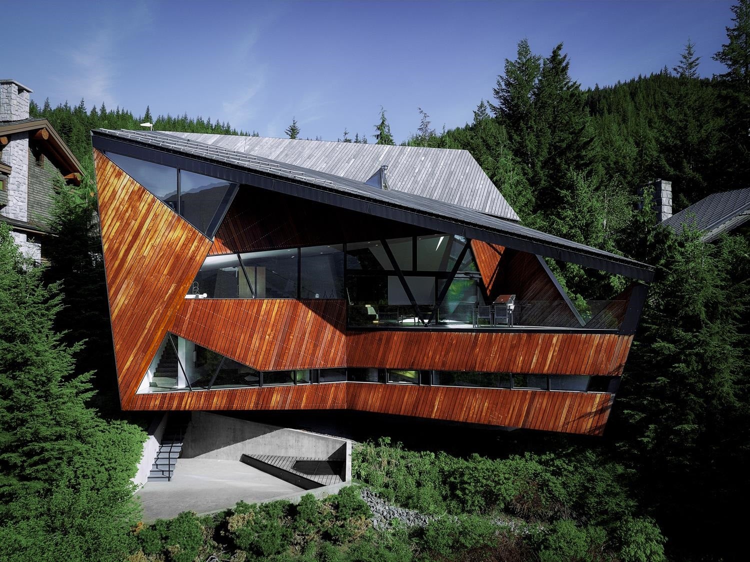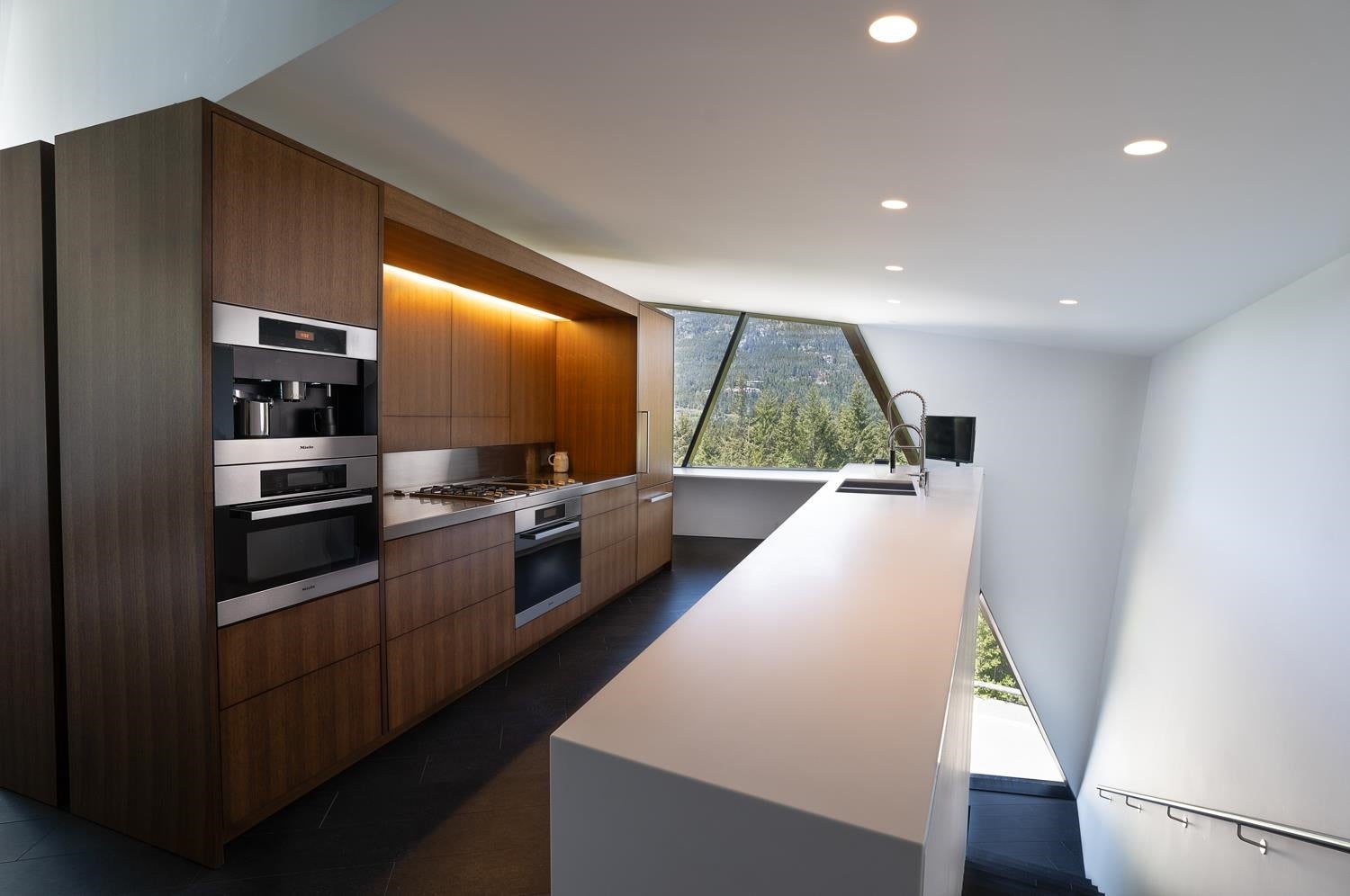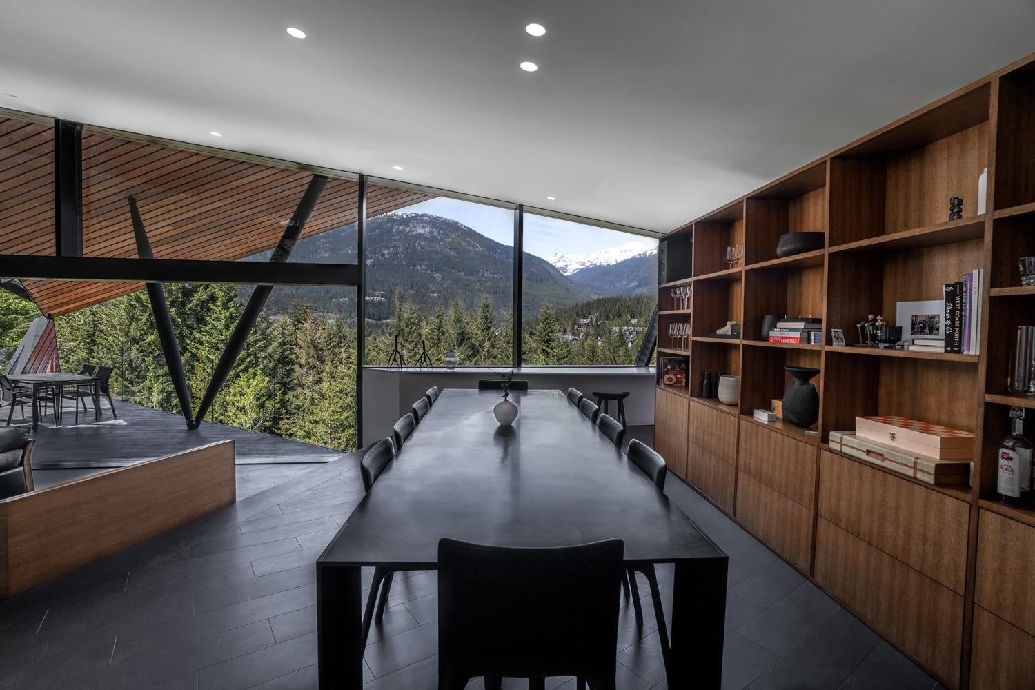 There are notable homes in Whistler, and then there’s 3801 Sunridge Place. Designed by Patkau Architects, this is a piece of art you can live in — a modern mountain hideaway that doesn’t just sit on the hillside, it folds into it. Anchored at the end of a quiet cul-de-sac in Sunridge Plateau, Whistler’s most prestigious ski-in/ski-out enclave, this home was built to frame every valley view, every snowfall, every last golden hour. Inside, 4,497 square feet of light and angles unfold in sharp lines and warm finishes. White walls reflect the sun as it moves through oversized windows. Ceilings lean and walls dip — like origami in motion — creating a flow that’s anything but standard. Wrapped in Ipê hardwood that naturally fades to silver with time, the house blends into its surroundings.