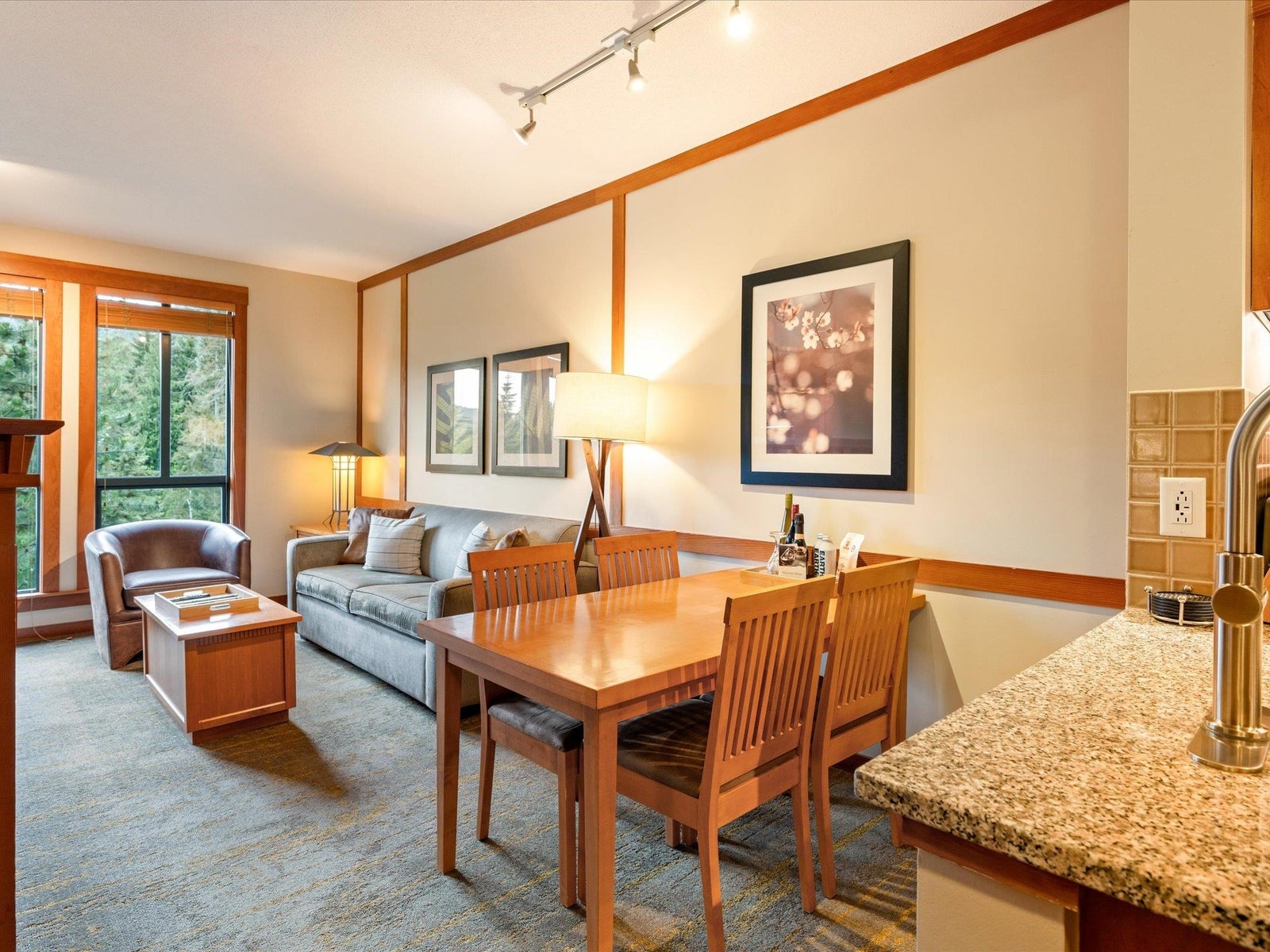 Phase II property at Whistler center location. Owner can use up to 28 days in summer phase and 28 days in winter phase. Nightly rental allowed but has to be managed by the hotel management company. Room has a full kitchen, one King size bed in the bedroom, and one queen size pull-out sofa bed in the living room. Building provides one complimentary underground parking spot for owner use and one ski locker. This hotel generated top rental in Whistler for the owners, not mention the steps distance to the gondolas, trails, commercials, transportations and everything else this No.1 ski resort in North America offers.