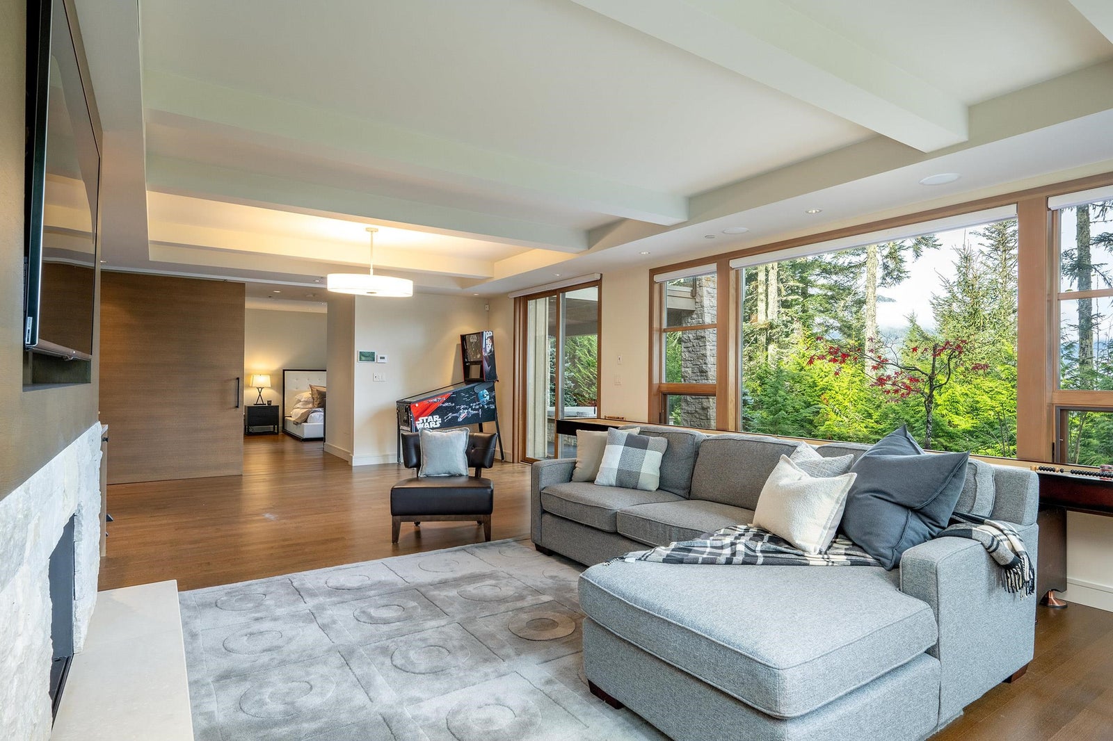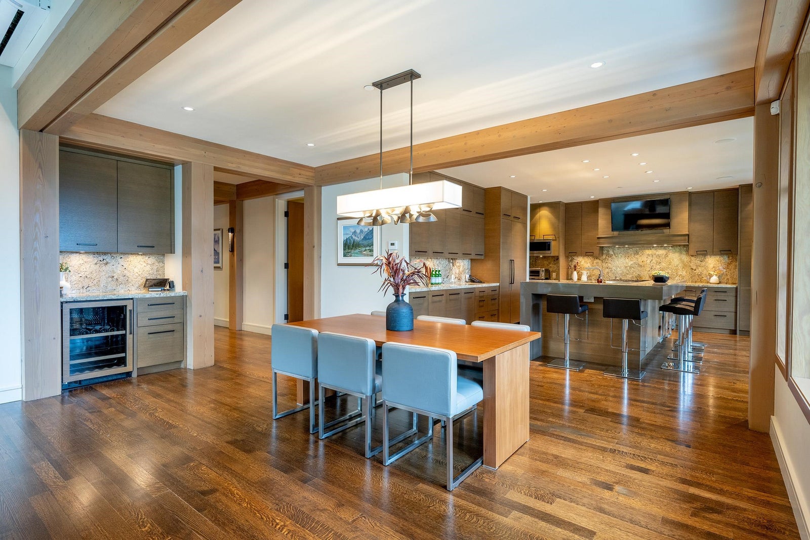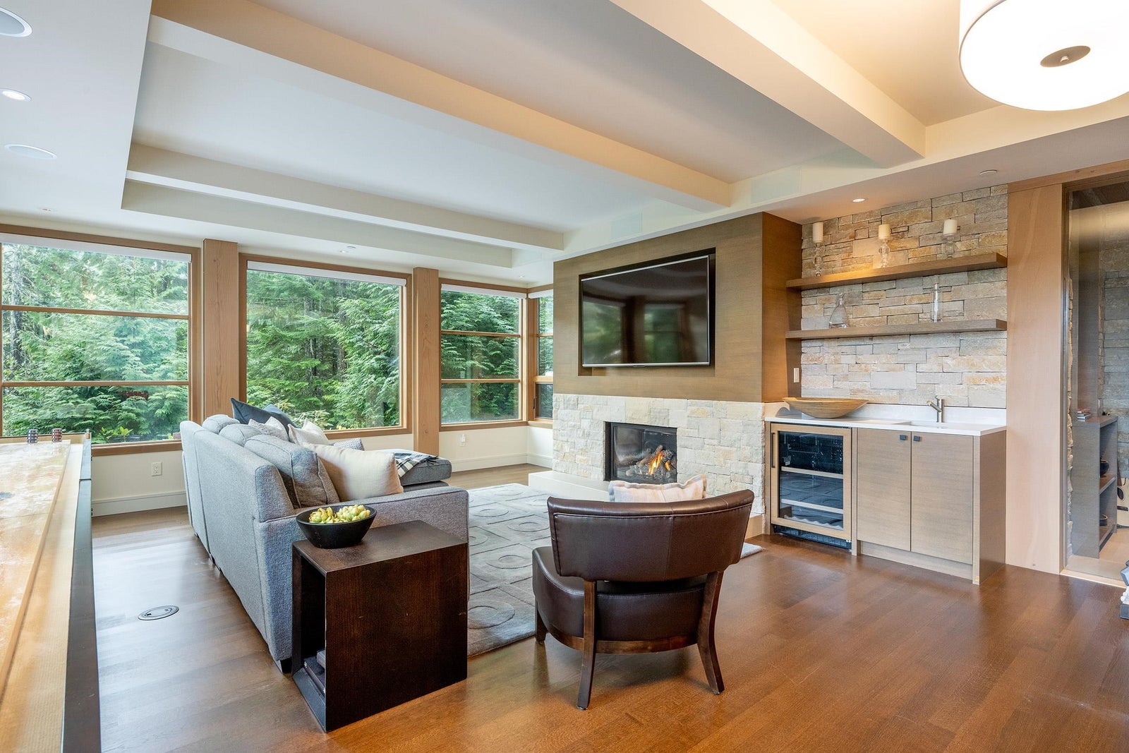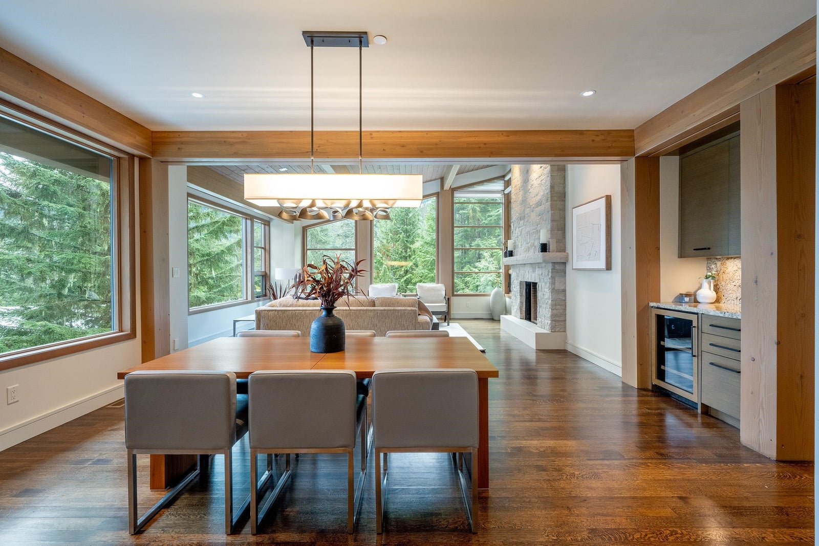 Tucked high above Whistler Creekside in the exclusive Kadenwood neighbourhood, this home feels like a world apart — surrounded by forest, mountain air, and endless views. Step inside and you can feel the craftsmanship everywhere. A kitchen built for connection, with custom white oak cabinetry and a 48” Thermador range ready for long dinners and laughter that lingers. A Great Room where 16-foot ceilings and a wood-burning fireplace pull everyone together after a day on the slopes. A study wrapped in custom millwork, a wine room that’s perfectly chilled, a games room made for late-night movies. Every space has been thought through — the heated outdoor living area, the reclaimed timbers that give warmth and soul, the quiet hum of radiant heat beneath limestone floors.
