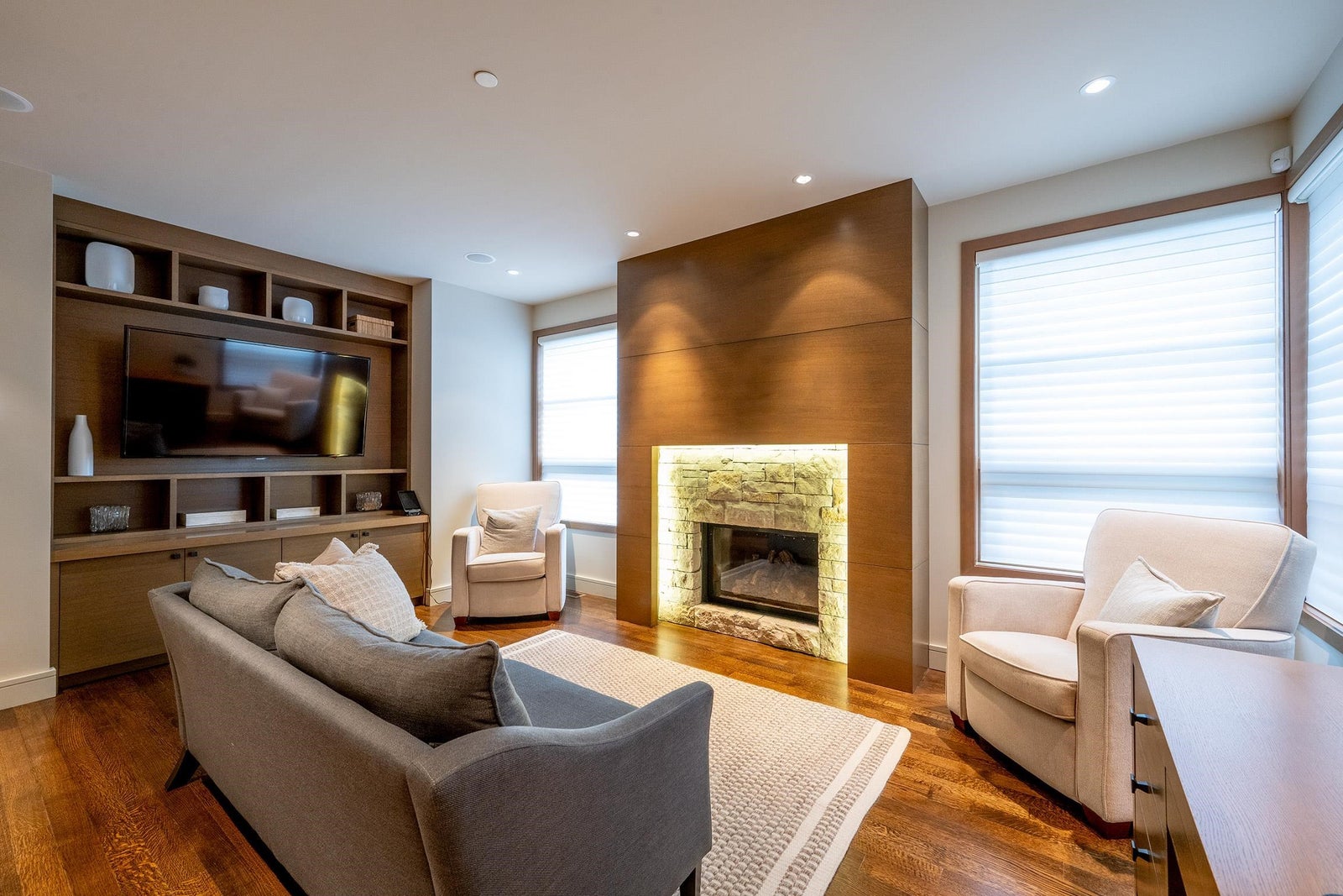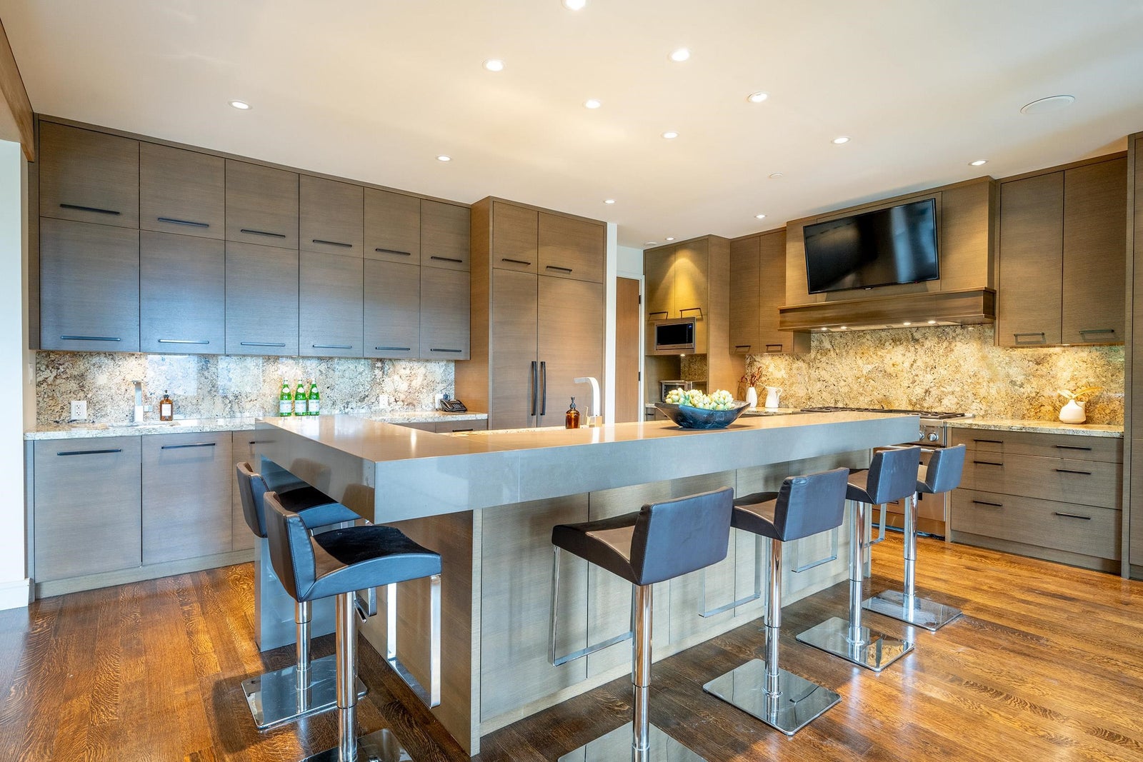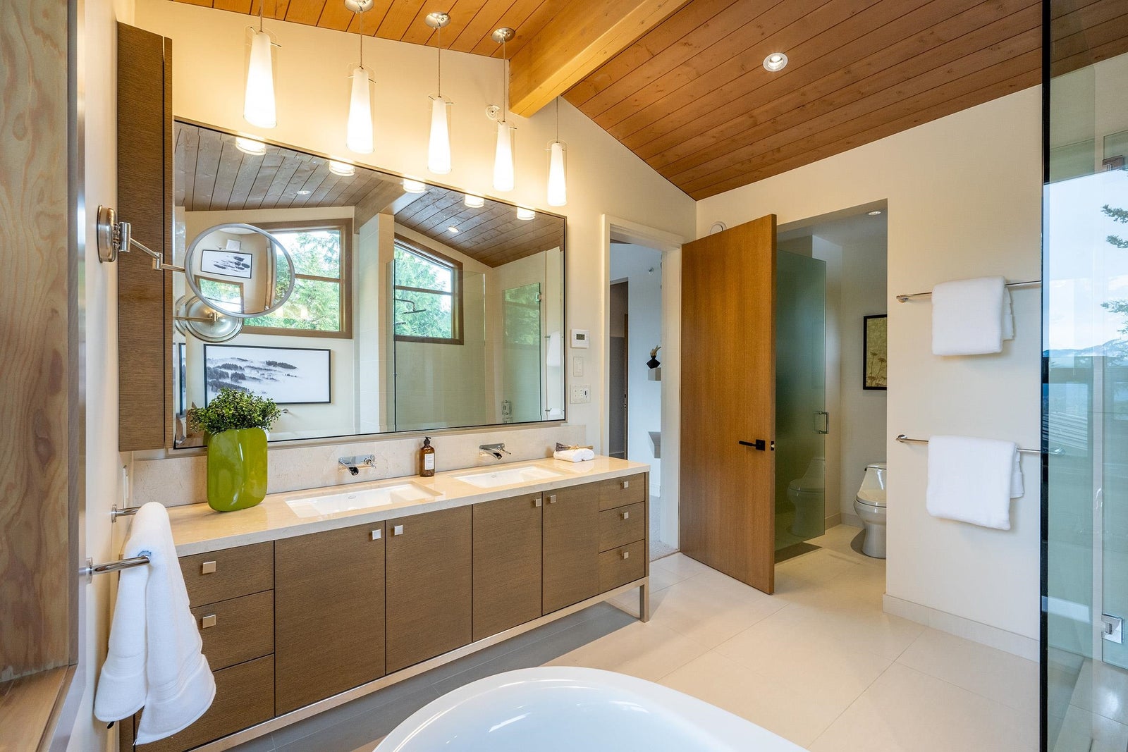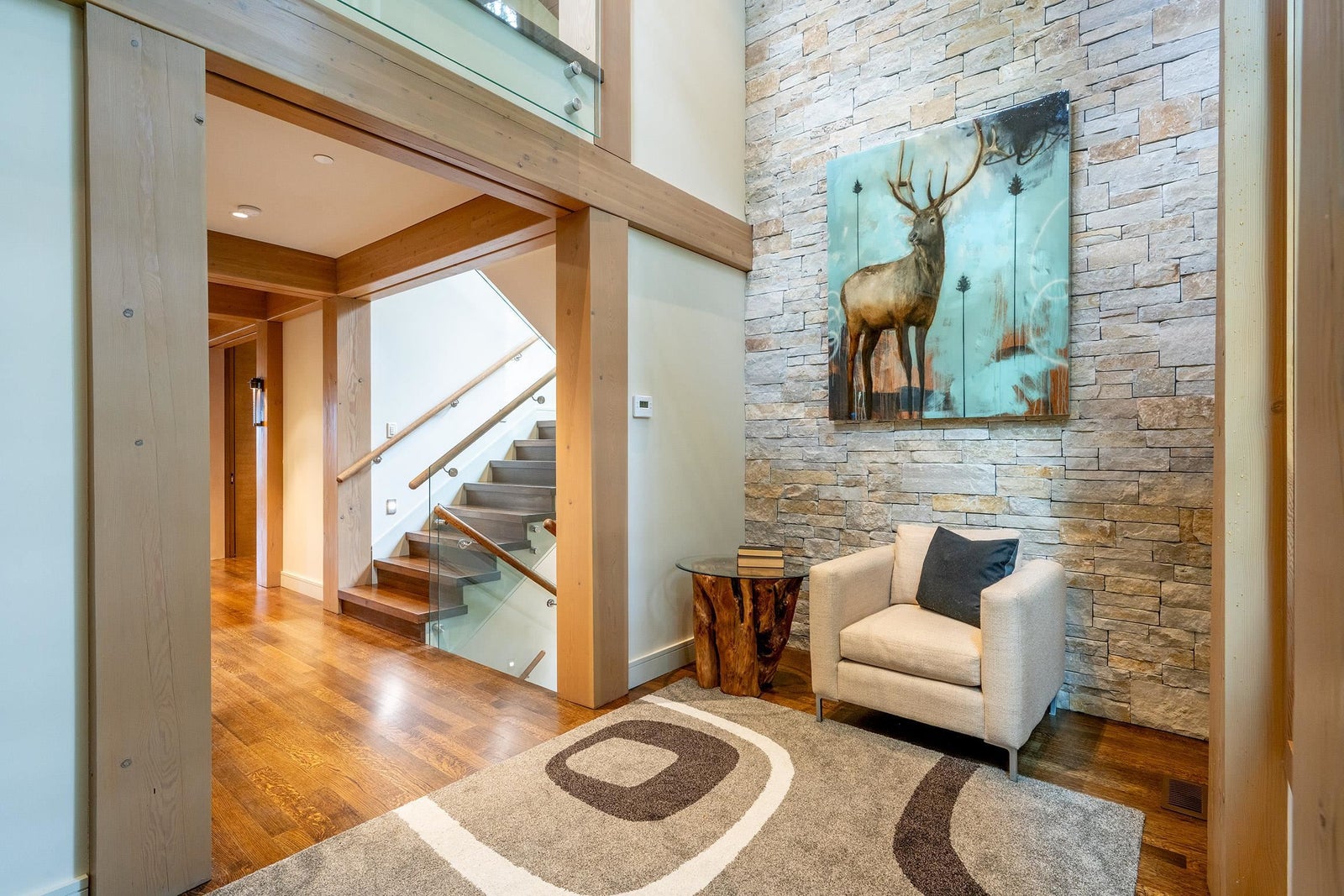 Tucked high above Whistler Creekside in the exclusive Kadenwood neighbourhood, this home feels like a world apart — surrounded by forest, mountain air, and endless views. Step inside and you can feel the craftsmanship everywhere. A kitchen built for connection, with custom white oak cabinetry and a 48” Thermador range ready for long dinners and laughter that lingers. A Great Room where 16-foot ceilings and a wood-burning fireplace pull everyone together after a day on the slopes. A study wrapped in custom millwork, a wine room that’s perfectly chilled, a games room made for late-night movies. Every space has been thought through — the heated outdoor living area, the reclaimed timbers that give warmth and soul, the quiet hum of radiant heat beneath limestone floors.