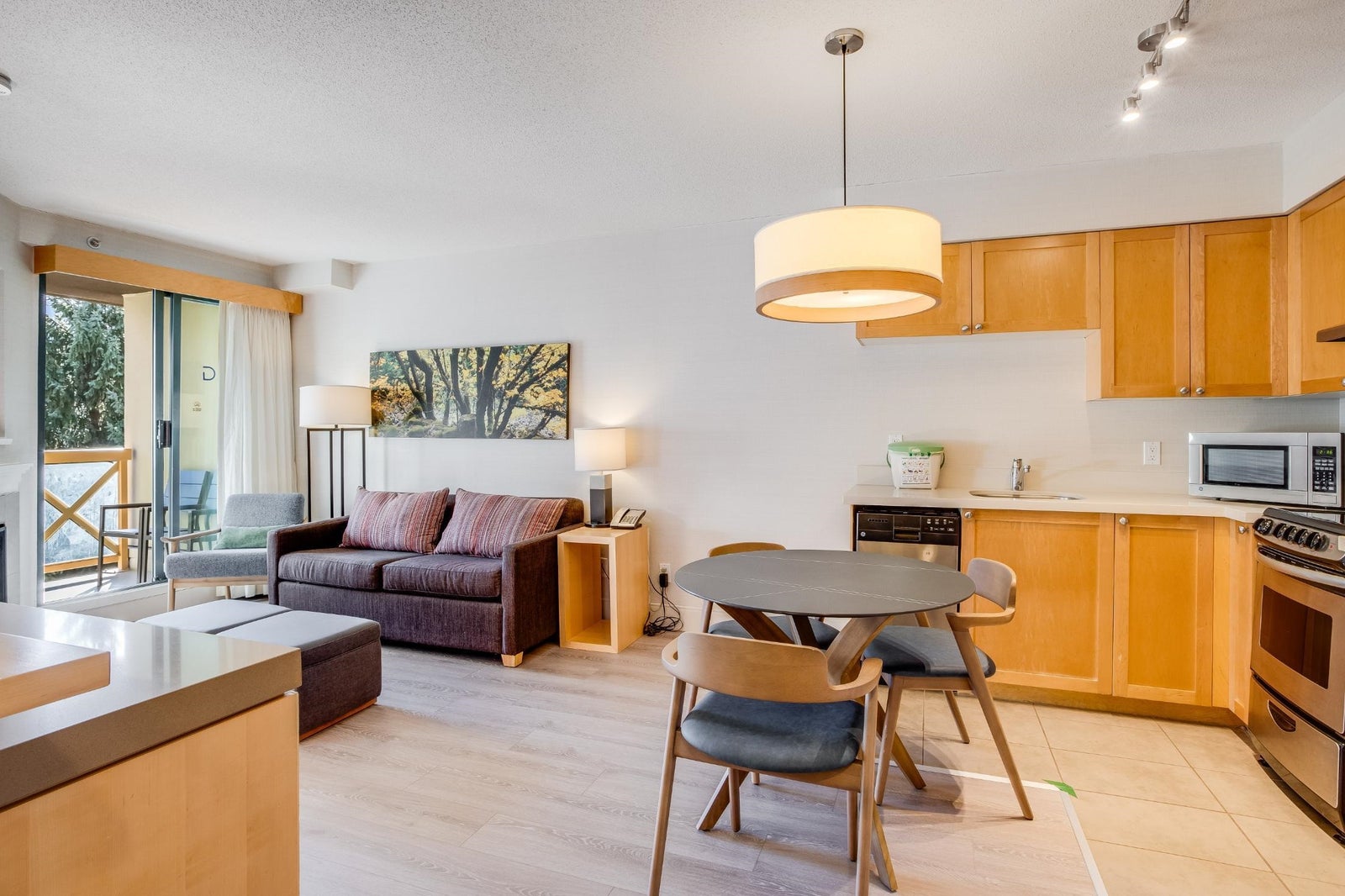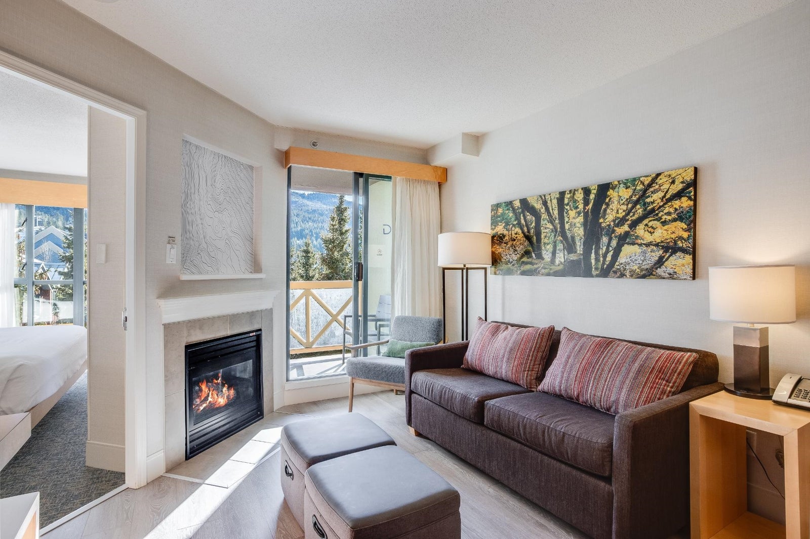 This bright & spacious Delta Whistler Village Suites 1-bedroom apartment was chosen by its current owner for it's stunning south-facing views of Whistler Mountain. The suite features a fully equipped kitchen, in-suite washer/dryer, owners storage locker, king bed, sofa bed and fireplace. For those eager to explore, Whistler Village's diverse array of restaurants, shops, and activities are mere steps away. After indulging in Whistler's outdoor pursuits, residents may access the year-round heated pool, 3 hot-tubs, dry sauna or hit the gym for a workout. HOA fees are paid on behalf of the owners. Owners enjoy up to 56 nights a year of use, making this the ideal investment for those seeking the perfect balance between lifestyle and strong revenues.